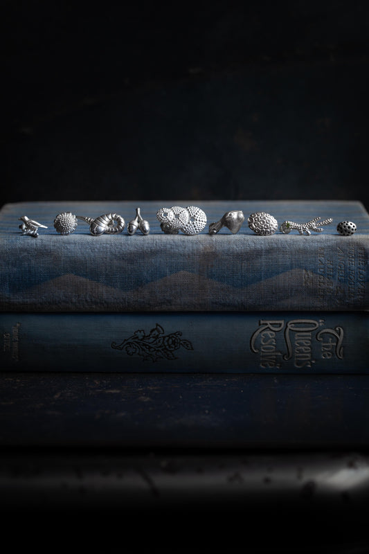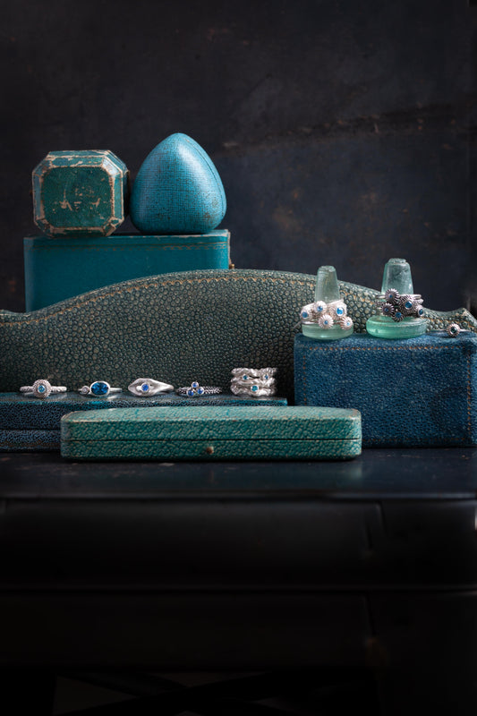 I wanted to create a shop and atelier where people are drawn in by their curiosity and then want to find out more. Inspired by a Victorian shop, you can browse my collection of ready-to-wear jewellery and see me at work in the same space. Virtual viewings are also available.