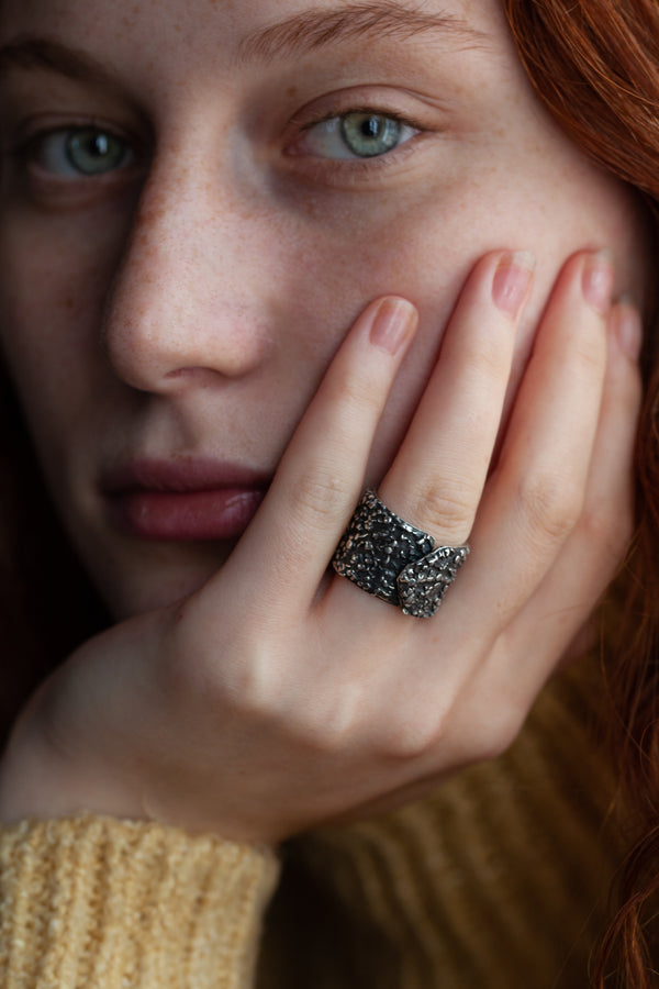 Make a statement with a chunky ring, handmade by Harry Potter jeweller Catherine Hills. Choose from unusual chunky rings that can be worn everyday or to create a finishing touch to an outfit. The collection includes stacking chunky rings, chunky rings with gemstones and classic chunky rings for men and women. Each ring can be made in your choice of metal - choose from sterling silver, gold, rose gold or blackened oxidised silver.